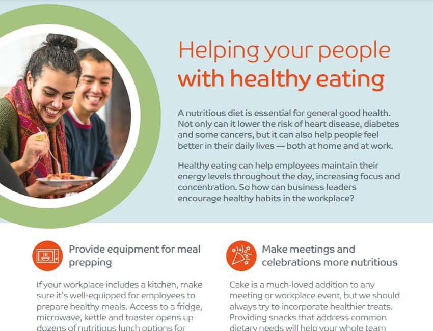 Our free resources outline tips on making nutritional changes stick, as well as ways to encourage healthy eating in the workplace. Download them here: